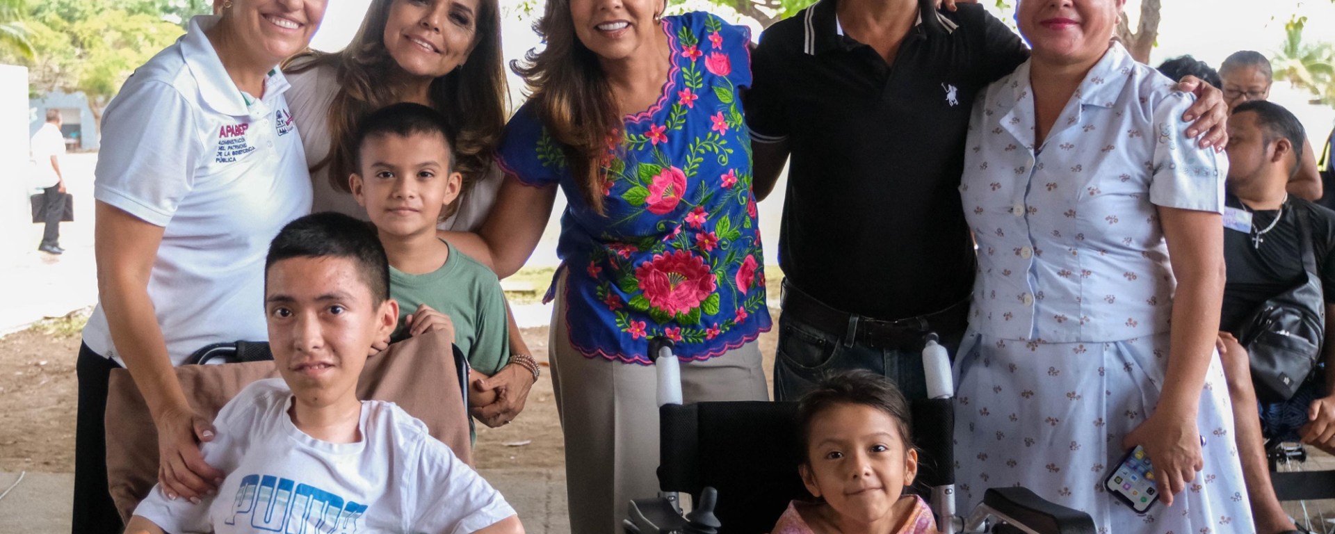 “Cada entrega transforma una vida, recuperar la movilidad es recuperar la alegría, la autonomía y con la posibilidad de vivir con dignidad” expresó la gobernadora de Quintana Roo junto a los beneficiarios, Enzo, quien recibió una silla PCI; Cristina, Yaretzi y Ángel, con sus sillas eléctricas; y Davisa, José, Francisca, Arabel y Diego, con sillas estándar.