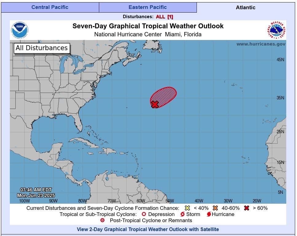 Tulum, 23 de junio de 2025.— El Centro Nacional de Huracanes de Estados Unidos informó que se vigila una amplia zona de tormentas frente a las costas de Centroamérica y el sur de México, la cual podría evolucionar gradualmente en los próximos días.