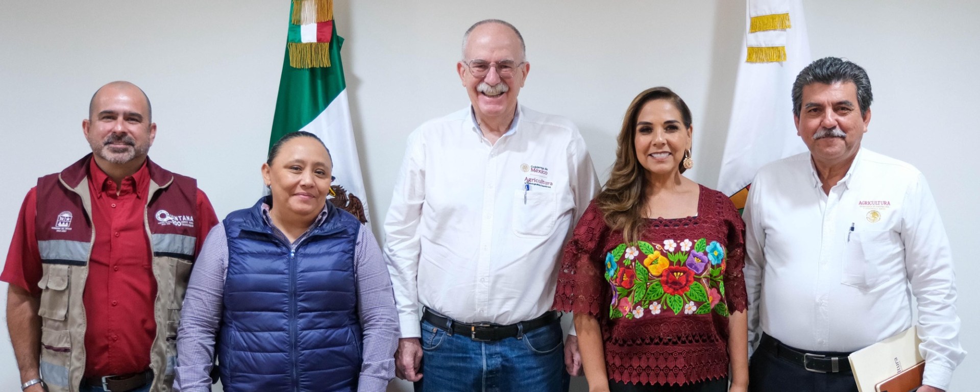 Estuvieron en la reunión, entre otros funcionarios, Enrique Morales Pardo, titular de la SADER en Quintana Roo; Jorge Aguilar Osorio, secretario de Desarrollo Agropecuario Rural y Pesca (SEDARPE), y Cristina Torres, secretaria de Gobierno.