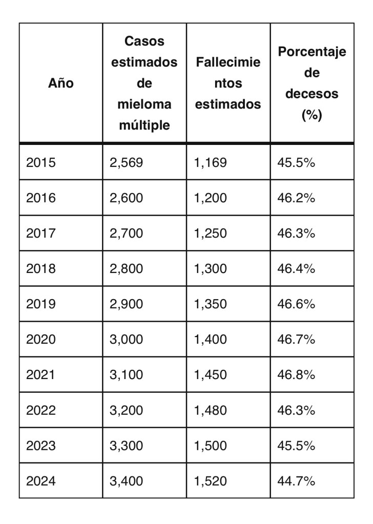 Según datos de Globocan, en México se registran más de dos mil 300 nuevos casos anuales. Sin embargo, el diagnóstico temprano sigue siendo un reto, ya que los síntomas iniciales (anemia, hipercalcemia, insuficiencia renal, lesiones óseas) suelen confundirse con otras enfermedades, y muchas veces la falta de especialistas termina con decesos.