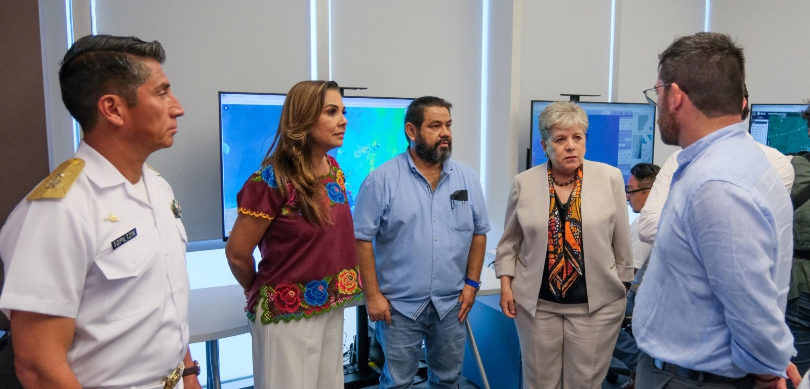 Tras el recorrido, la secretaria Alicia Bárcena felicitó a quienes ponen todo su esfuerzo en este Centro de Monitoreo, que usa satélites europeos que ayudan mucho en este trabajo. “Esto que hacen aquí en Quintana Roo, en una cooperación entre el Gobierno del Estado y la Secretaría de Marina, es muy importante, sobre todo para tener la información de cómo nos afectará este fenómeno. Nos da información satelital oportuna y nos permite identificar puntos críticos y tomar acciones”, expresó la titular de SEMARNAT.