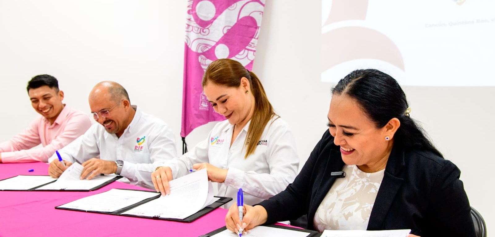 Cancún.- La Secretaría de Educación de Quintana Roo (SEQ) y el Sistema para el Desarrollo Integral de la Familia (DIF), firmaron un convenio de colaboración, conjuntando esfuerzos y recursos para la realización de actividades tendientes a favorecer la operación eficiente y eficaz del Programa de Alimentación Escolar en las escuelas de educación básica.