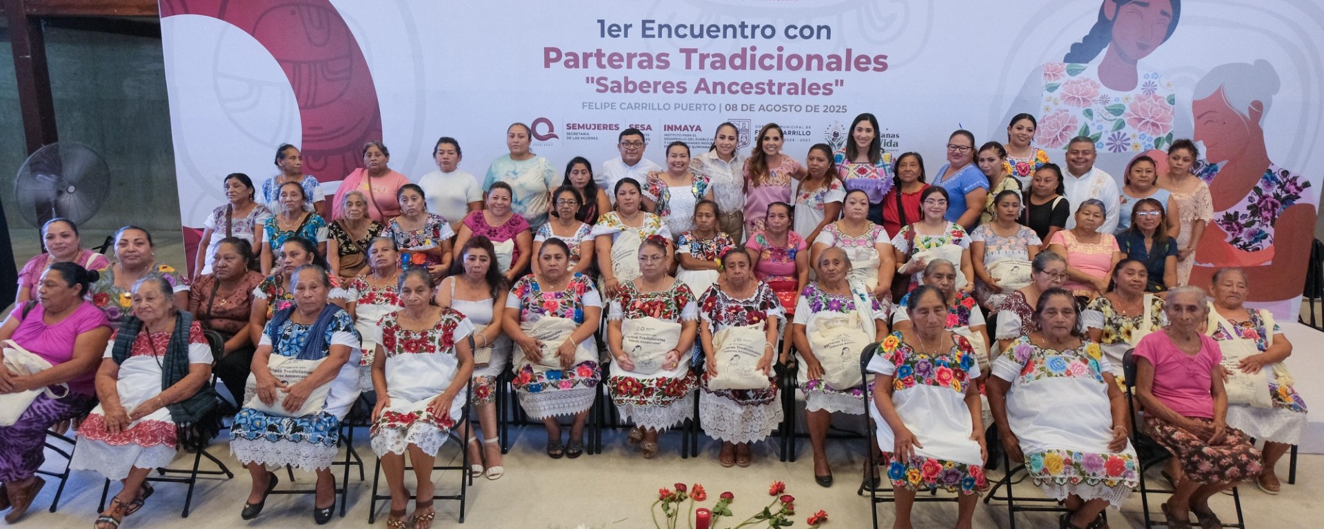 Un total de 139 mujeres parteras tradicionales de todo el estado, quienes atienden partos, malestares y procesos del embarazo con técnicas tradicionales y herbolaria a través de saberes ancestrales transmitidos por sus madres, suegras, abuelas y bisabuelas, se reunieron en el Teatro de la Ciudad de Felipe Carrillo Puerto.