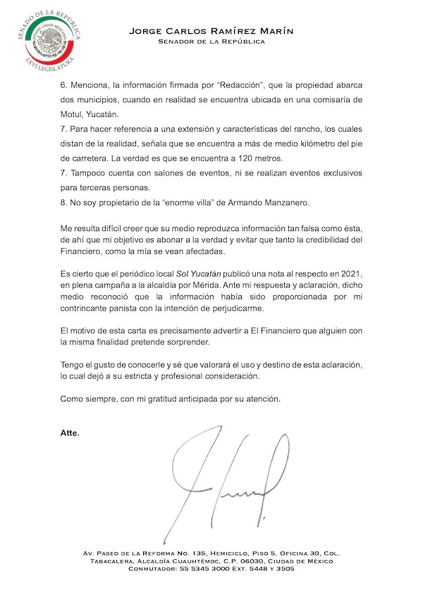 En nota aclaratoria, el expriista aceptó ser dueño de dicha propiedad, ubicada en una comisaria de Motul, y que adquirió en 2001. Detalló que está a 120 metros a pie de la carretera y negó que en “Tierra de Osos” realice eventos exclusivos.