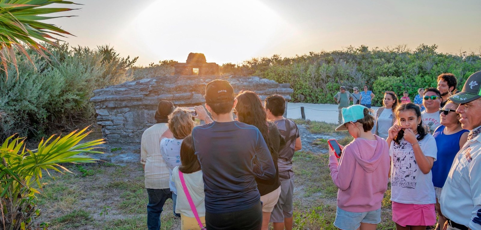 Cozumel.- La Fundación de Parques y Museos de Cozumel (FPMC) convoca a la comunidad y visitantes a ser testigos del fenómeno arqueoastronómico vespertino de El Caracol, que tendrá lugar el jueves 28 de agosto, a las 18:00 horas, en el Parque Ecoturístico Punta Sur. Este asombroso efecto visual confirma el profundo conocimiento que los mayas tenían sobre los ciclos solares y su reflejo por medio de la arquitectura prehispánica.