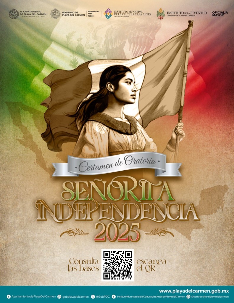 Playa del Carmen, QRoo, 27 de agosto de 2025.- Con nuevos criterios de participación, el certamen “Señorita Independencia” tendrá lugar el próximo 10 de septiembre en el Teatro de la Ciudad. La ganadora acompañará a la comitiva oficial durante las ceremonias del aniversario de la Gesta Heroica de los Niños Héroes, el Grito de Independencia y el Desfile Cívico Militar.