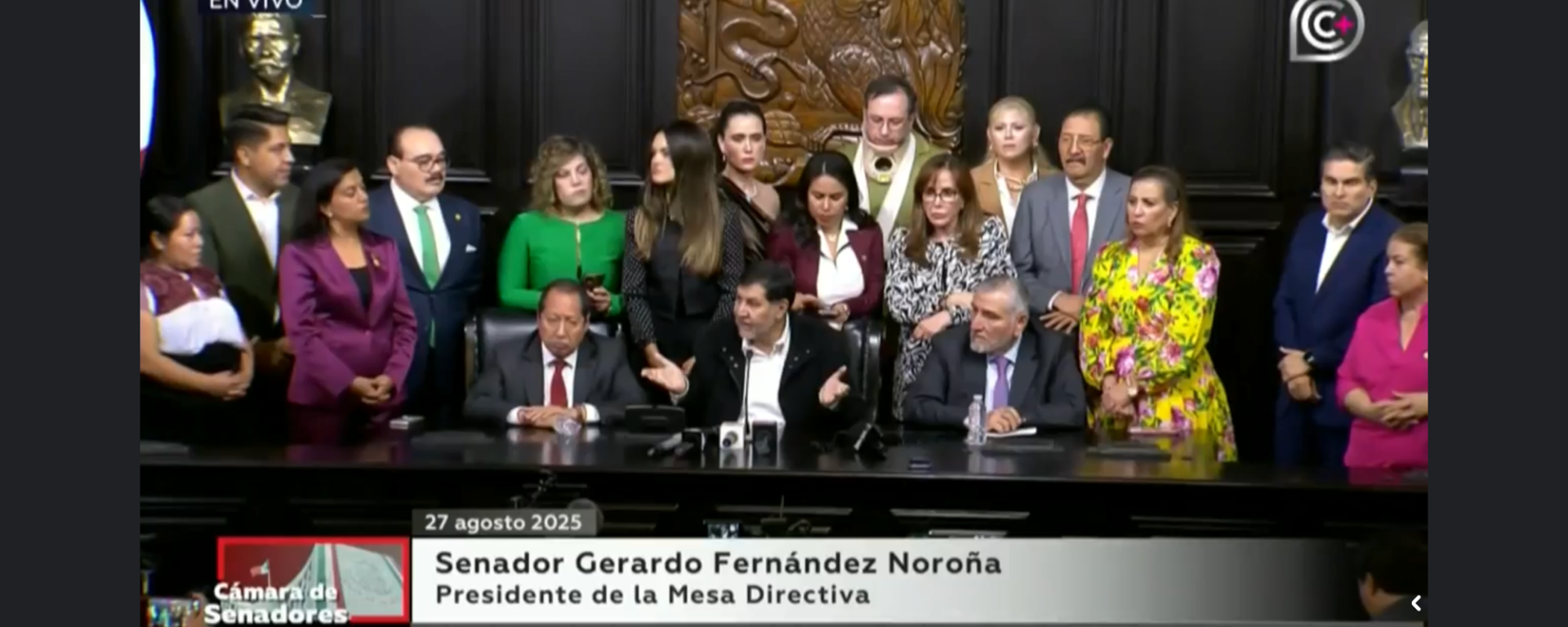 En conferencia de prensa posterior a las agresiones, el Senador Fernández Noroña informa que convocarán a sesión extraordinaria para solicitar el desafuero de Alito Moreno, Rubén Moreira y de todos los legisladores que participaron en la agresión que quedó grabada en video.