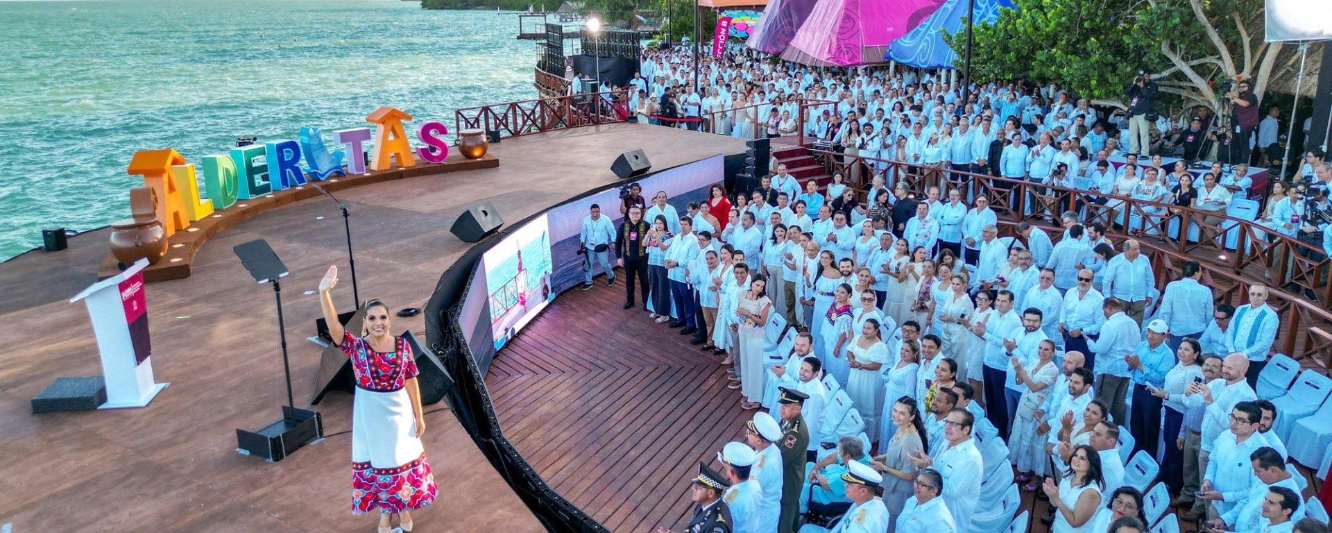 En la zona turística de Calderita, comunidad de Chetumal, la capital del estado, y ante la representante de la Presidenta Claudia Sheinbaum, la secretaria de Turismo Josefina Rodríguez; del presidente del Poder Judicial, Heyden Cebada Rivas; del Poder Legislativo, Renán Sánchez Tajonar; representantes de los sectores sociales y el pueblo en general, Mara Lezama exhortó a todas y todos a no permitir volver al pasado, que terminó para siempre.