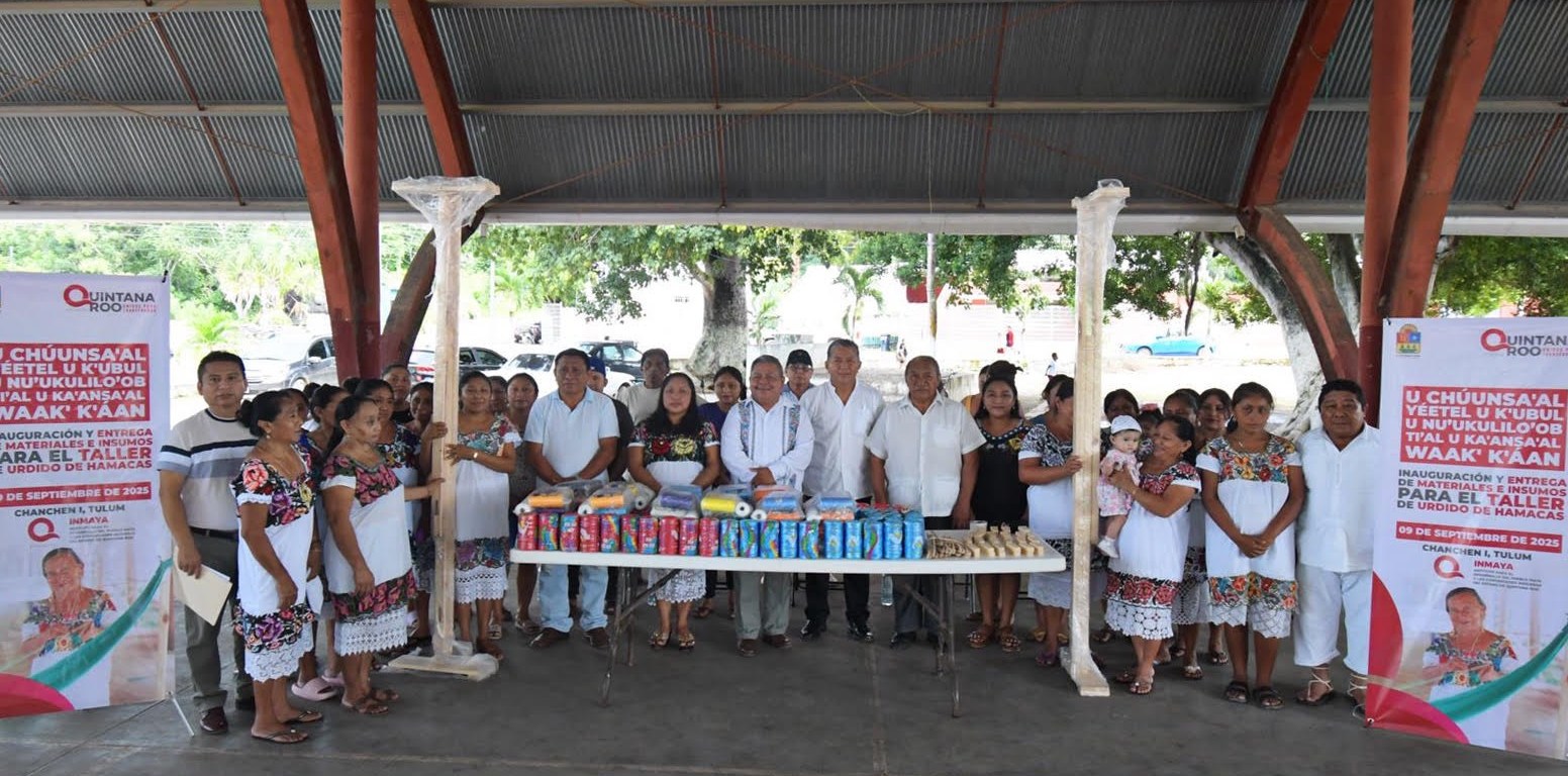 Chanchén I.- El Instituto para el Desarrollo del Pueblo Maya y las Comunidades Indígenas del Estado de Quintana Roo (INMAYA) inauguró el Taller de Urdido de Hamacas en San Juan Oriente, municipio de José María Morelos, y en Chanchén I, municipio de Tulum, beneficiando de manera directa a 44 mujeres mayas con la entrega de insumos que fortalecen su trabajo artesanal.