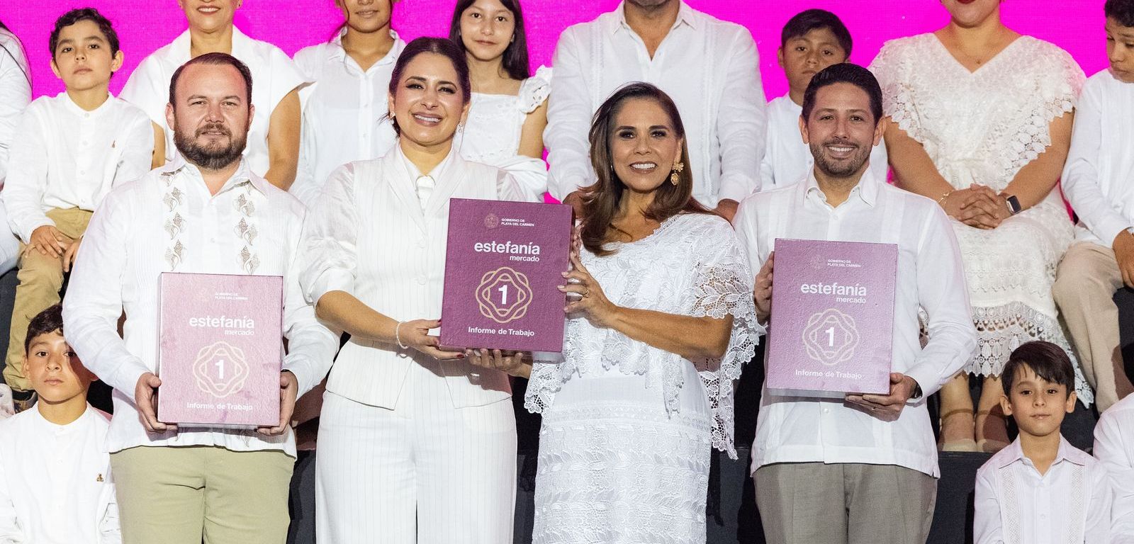 Previo a este evento, en el auditorio “Leona Vicario” del Palacio Municipal se llevó a cabo la Cuarta Sesión Pública y Solemne del Cabildo de Playa del Carmen, la presidenta municipal Estefanía Mercado Asencio entregó la glosa del primer informe de su administración del periodo 2024-2027 a la secretaria de Gobierno, Cristina Torres Gómez, quien asistió en representación de la gobernadora Mara Lezama, a la diputada Lilia Inés Mis Martínez por el Congreso del Estado y a la magistrada Gabriela del Carmen Rodríguez Díaz por el Tribunal Superior de Justicia.