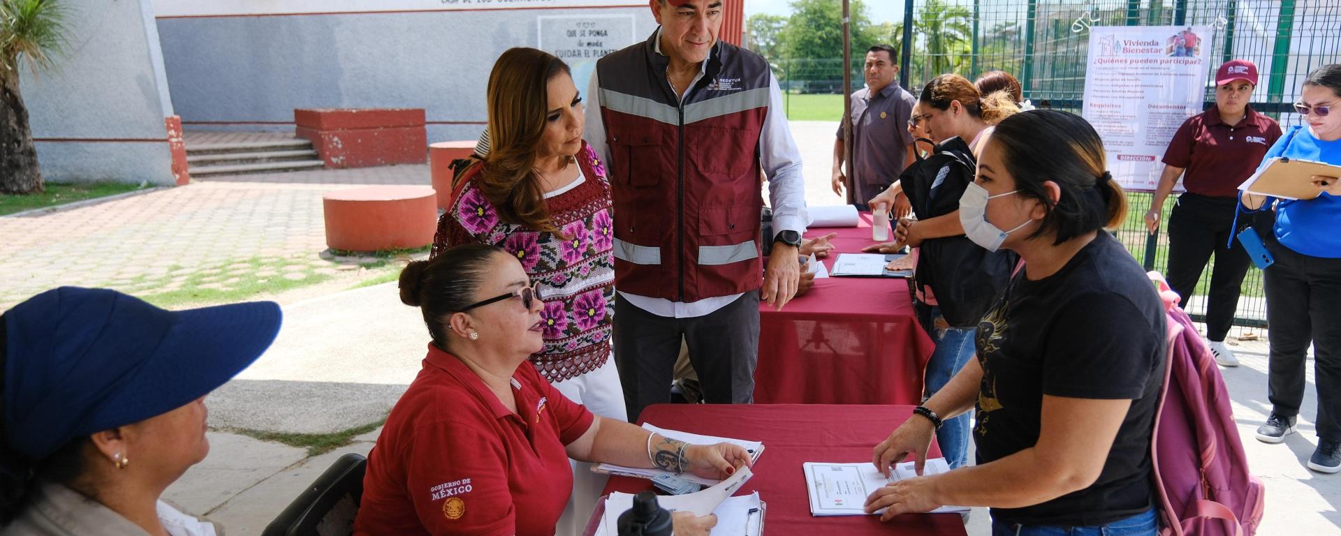 Cancún.- La gobernadora Mara Lezama Espinosa acompañó a las personas que acudieron hoy a la unidad deportiva “Toro” Valenzuela en el inicio del registro para acceder al programa Vivienda para el Bienestar del CONAVI, del 25 de septiembre al 2 de octubre próximo.