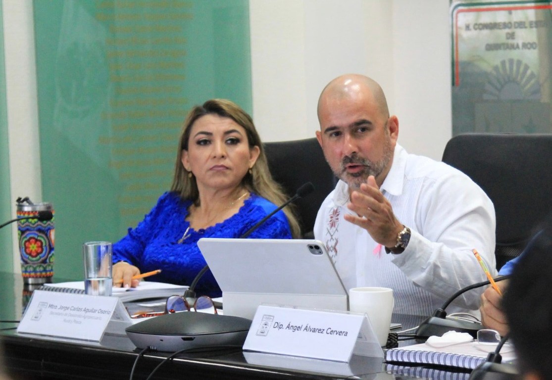 Chetumal.- El titular de la Secretaría de Desarrollo Agropecuario, Rural y Pesca (SEDARPE), Jorge Aguilar Osorio, compareció ante las y los diputados de la Comisión de Desarrollo Rural y Pesquero de la XVIII Legislatura del Congreso del Estado, para ampliar la glosa del Tercer Informe de la gobernadora Mara Lezama. Este ejercicio de transparencia y rendición de cuentas permitió detallar los avances y la nueva estrategia implementada en el sector.