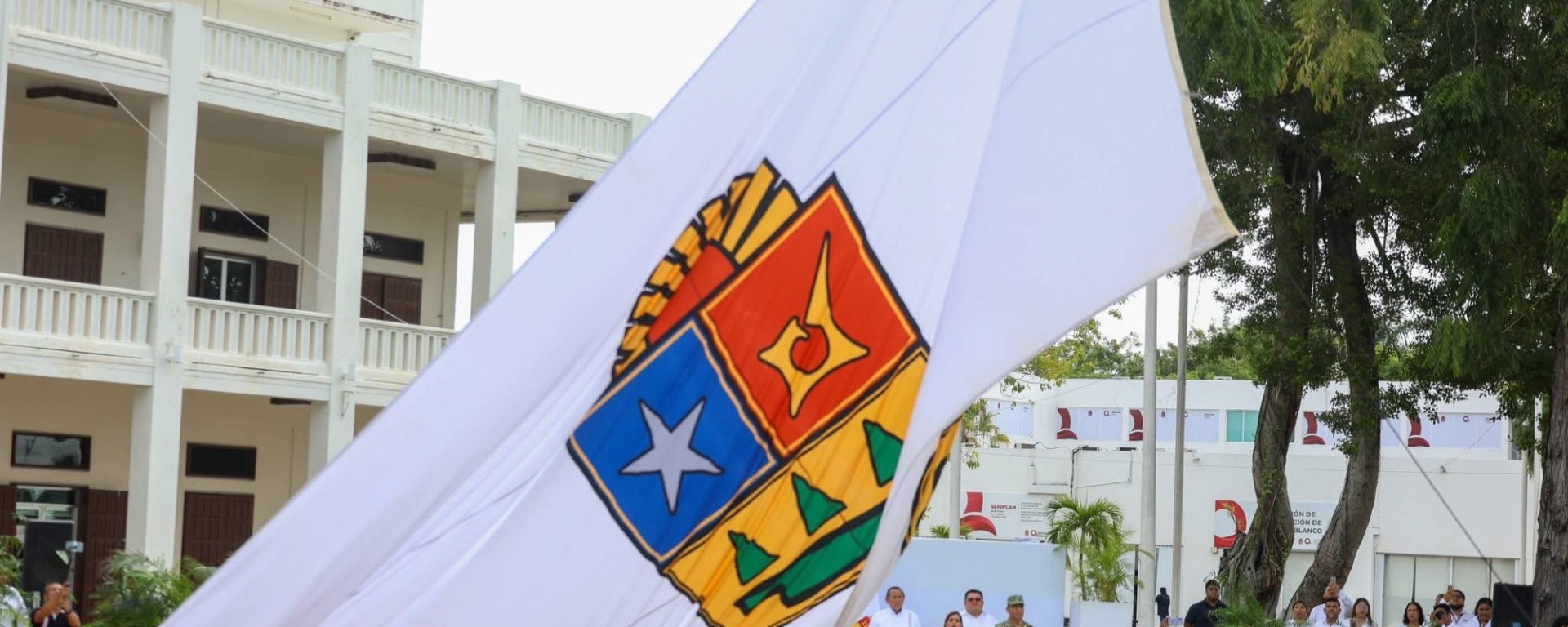 Chetumal.- La gobernadora Mara Lezama Espinosa encabezó la ceremonia de izamiento de la bandera de Quintana Roo en ocasión del 51 aniversario de su creación como Estado Libre y Soberano, evento en el que se estrenó la Banda de Guerra Monumental de más de 112 elementos, niños y jóvenes, así como las escoltas de Bandera Nacional y Estatal que se integra con 8 organizaciones cívicas libres y planteles educativos.