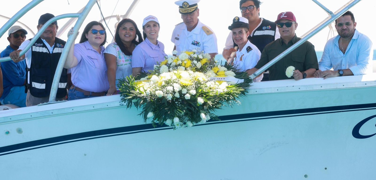 La ceremonia inició con la tradicional ofrenda floral en la bahía, desde el Muelle del Restaurante “La Playita”, en la que participaron autoridades municipales, federales y estatales, así como representantes de las cooperativas pesqueras y familiares de pescadores.
