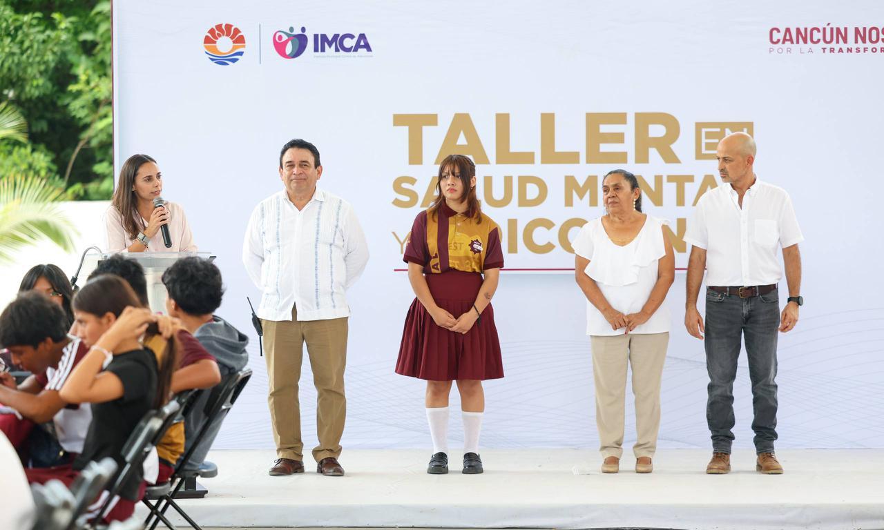 Cancún, Q. R., a 10 de octubre de 2025.- Como parte de las actividades que promueven la construcción de la paz en Benito Juárez, la Presidenta Municipal, Ana Paty Peralta, convivió con estudiantes que tomaron el “Taller en Salud Mental y Adicciones”, impartido por el Instituto Municipal de las Adicciones (IMCA) en la secundaria técnica “Ikal”, en la Supermanzana 260, para beneficio de su bienestar emocional y social.