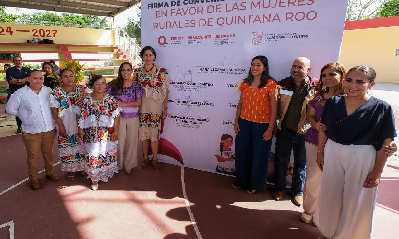 En un trabajo colaborativo entre la Procuraduría Agraria y la Secretaría de las Mujeres, la gobernadora Mara Lezama Espinosa, firmó el Convenio de Colaboración a Favor de las Mujeres Rurales de Quintana Roo, para impulsar políticas públicas con perspectiva de género para las mujeres del campo, conseguir que participen en la toma de decisiones dentro de sus ejidos y garantizar la prosperidad compartida.