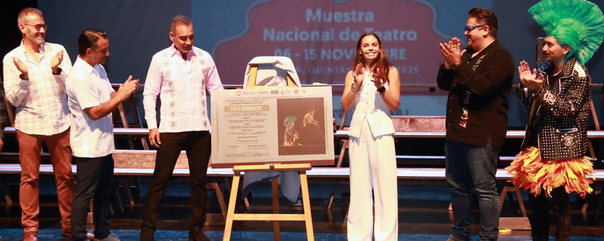 Cancún, Q. R., a 24 de octubre de 2025.- Luego de 19 presentaciones de la obra “Pato Schnauzer”, que reunió a más de 3 mil espectadores en el Teatro de la Ciudad, la Presidenta Municipal, Ana Paty Peralta, celebró el cierre de su primera temporada con la develación de una placa conmemorativa.