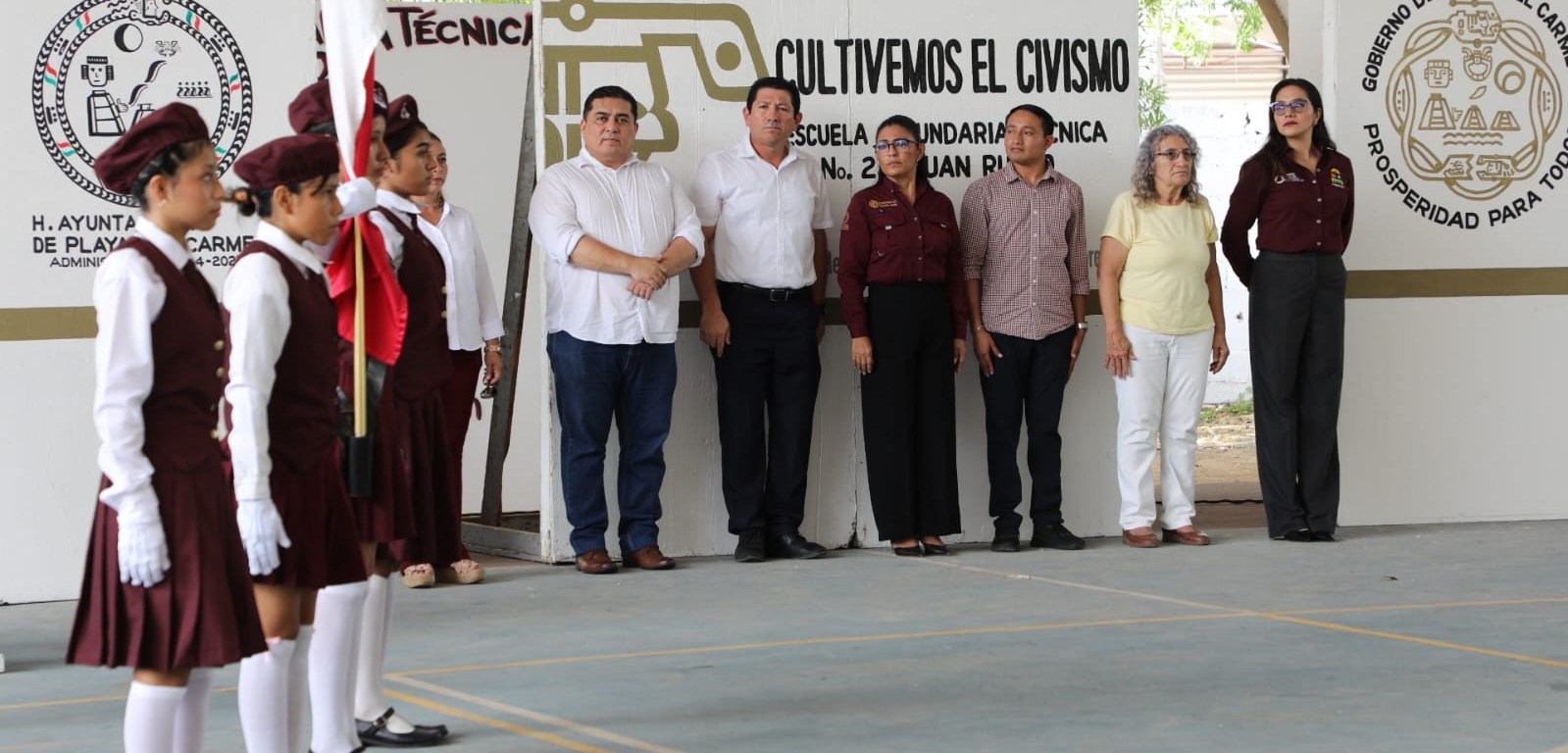 Playa del Carmen, Q. Roo, 27 de octubre de 2025.- Como parte del programa “Cultivemos el Civismo”, el gobierno municipal, que encabeza la presidenta Estefanía Mercado, realizó una jornada cívica en la Escuela Secundaria Técnica No. 23 “Juan Rulfo”, ubicada en la colonia Ejido.