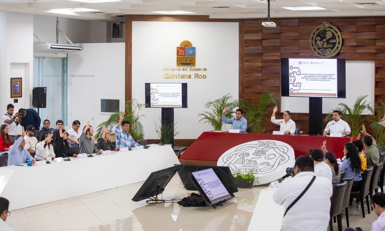 Playa del Carmen, Q. Roo, 31 de octubre de 2025.— El Ayuntamiento de Playa del Carmen celebró la Décima Tercera Sesión Extraordinaria de Cabildo, en la que se aprobó la autorización de la Tabla de Valores Catastrales Unitarios de Suelo y Construcción, sin afectar a los pequeños hoteles ni a las familias del municipio.
