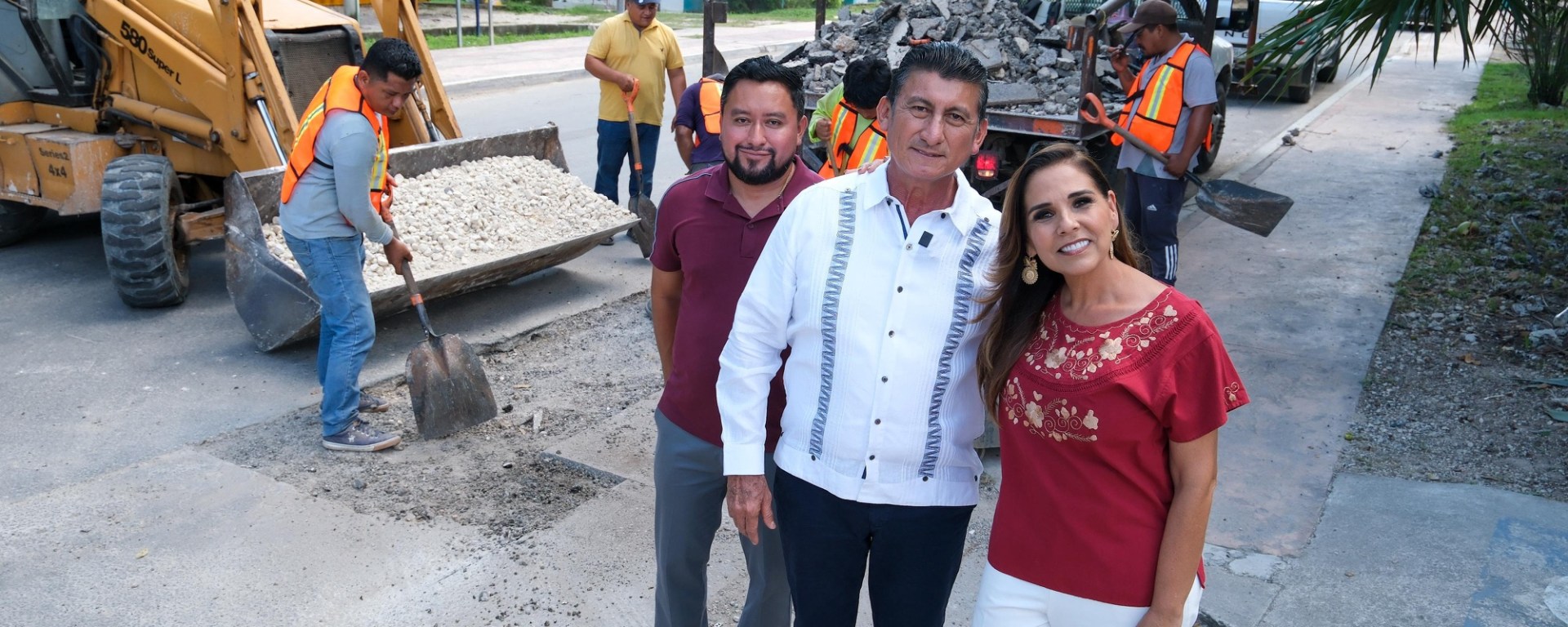 Bacalar.- La gobernadora Mara Lezama Espinosa acompañó al presidente municipal de Bacalar, José Alfredo Contreras Méndez, a la supervisión de un programa municipal de rehabilitación de calles en la cabecera, en la avenida costera con calle 30.