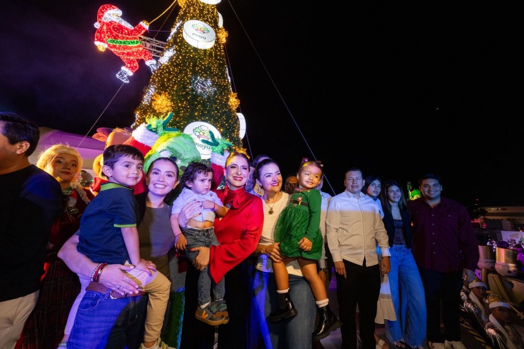Playa del Carmen, Q. Roo, 5 de diciembre de 2025.— Con el encendido del árbol navideño, la presentación de una cartelera cultural y artística, y ante una multitudinaria concurrencia en la Plaza 28 de Julio, la presidenta municipal Estefanía Mercado inauguró hoy la “Navidad Mágica 2025”, tradicional festival decembrino que atrae a miles de familias.