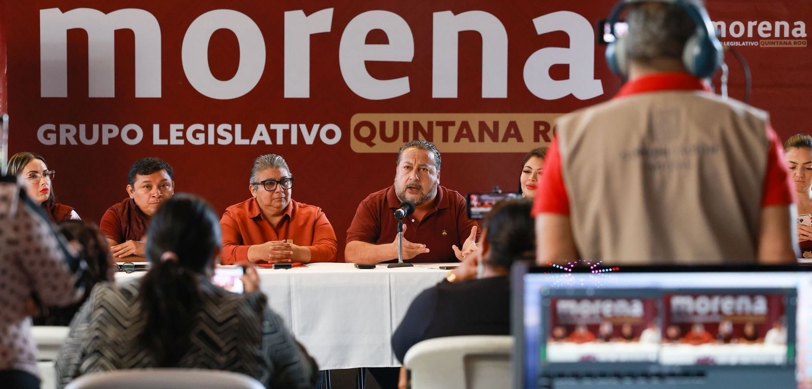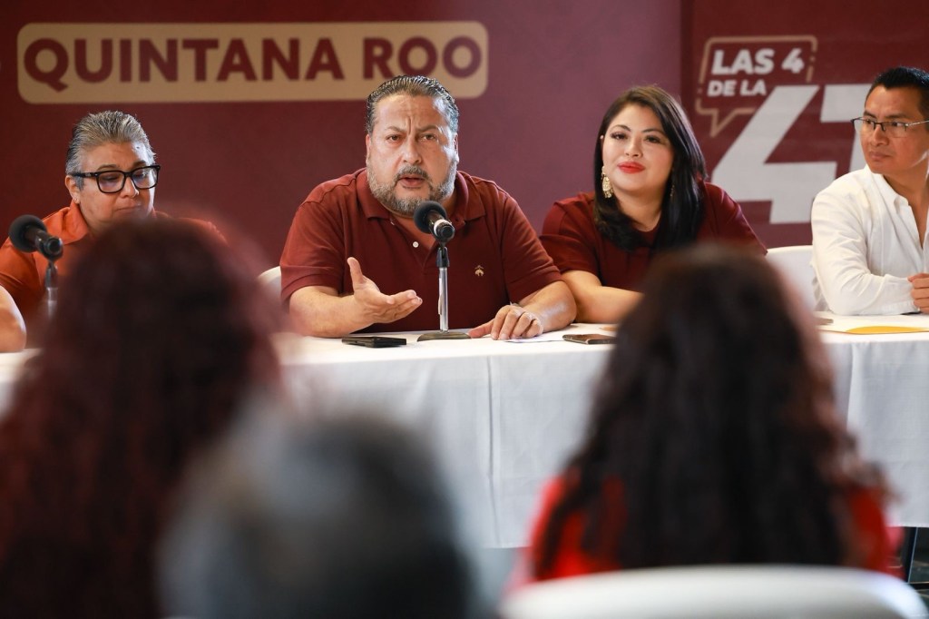 Chetumal, Quintana Roo.— El diputado Jorge Sanén, coordinador del Grupo Legislativo de Morena en el Congreso del Estado y presidente del Consejo Ejecutivo Estatal del partido, encabezó con éxito la rueda de prensa “Las 4 de las 4T”, un ejercicio informativo destinado a comunicar de forma directa los principales avances que, a siete años de la Cuarta Transformación, han impactado positivamente en la vida de las y los quintanarroenses.