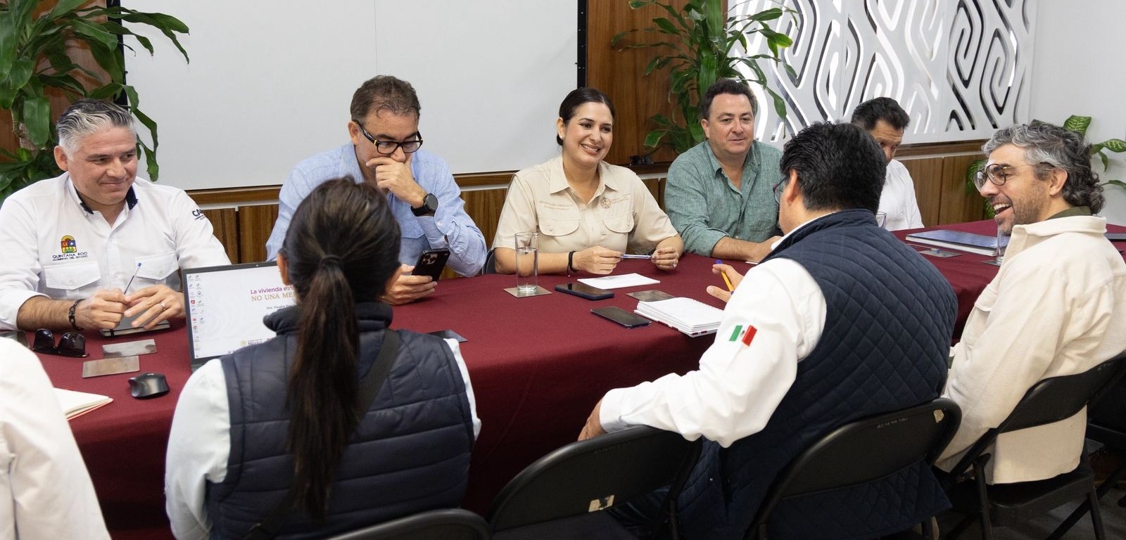Playa del Carmen, Q. Roo, 17 de diciembre de 2025.— La presidenta municipal Estefanía Mercado encabezó una reunión de trabajo estratégica con una comisión del INFONAVIT, encabezada por el director de Vivienda, Orlando Camarillo Ruiz, con el objetivo de avanzar de manera coordinada en el programa Vivienda para el Bienestar, que contempla la construcción de más de veinte mil viviendas en el municipio.