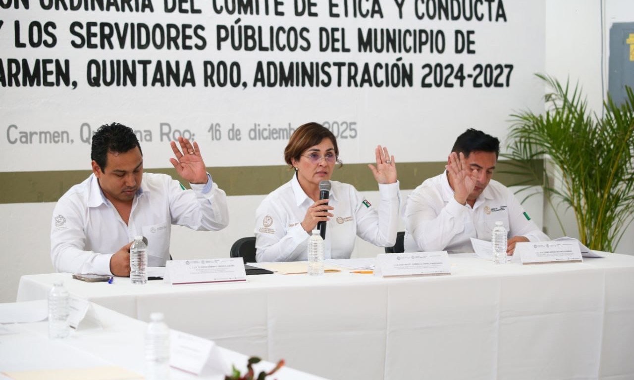 Playa del Carmen, Q. Roo, 20 de diciembre de 2025.— Como parte de las acciones para consolidar un gobierno con alta formación ética y valores en el servicio público, y en seguimiento a las indicaciones de la presidenta municipal Estefanía Mercado, el Comité de Ética y Conducta de las y los Servidores Públicos de Playa del Carmen, presidido por Cristina Alcérreca, titular del Órgano Interno de Control, presentó los avances logrados en la materia.