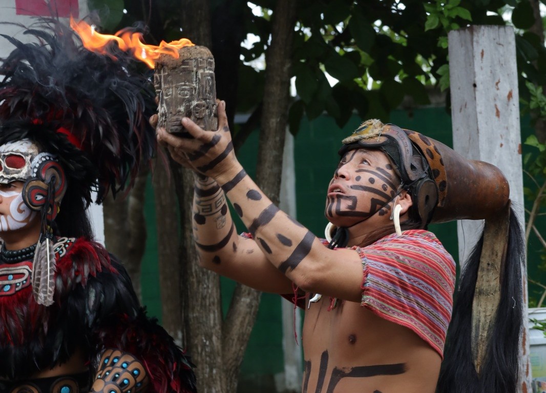 El coordinador de Culturas Populares y maestro de lengua maya, Román Pat, presidió la ceremonia pidiendo permiso a los cuatro puntos cardinales como dicta la tradición, y resaltó la participación de los danzantes Mayas de Mayapax.
