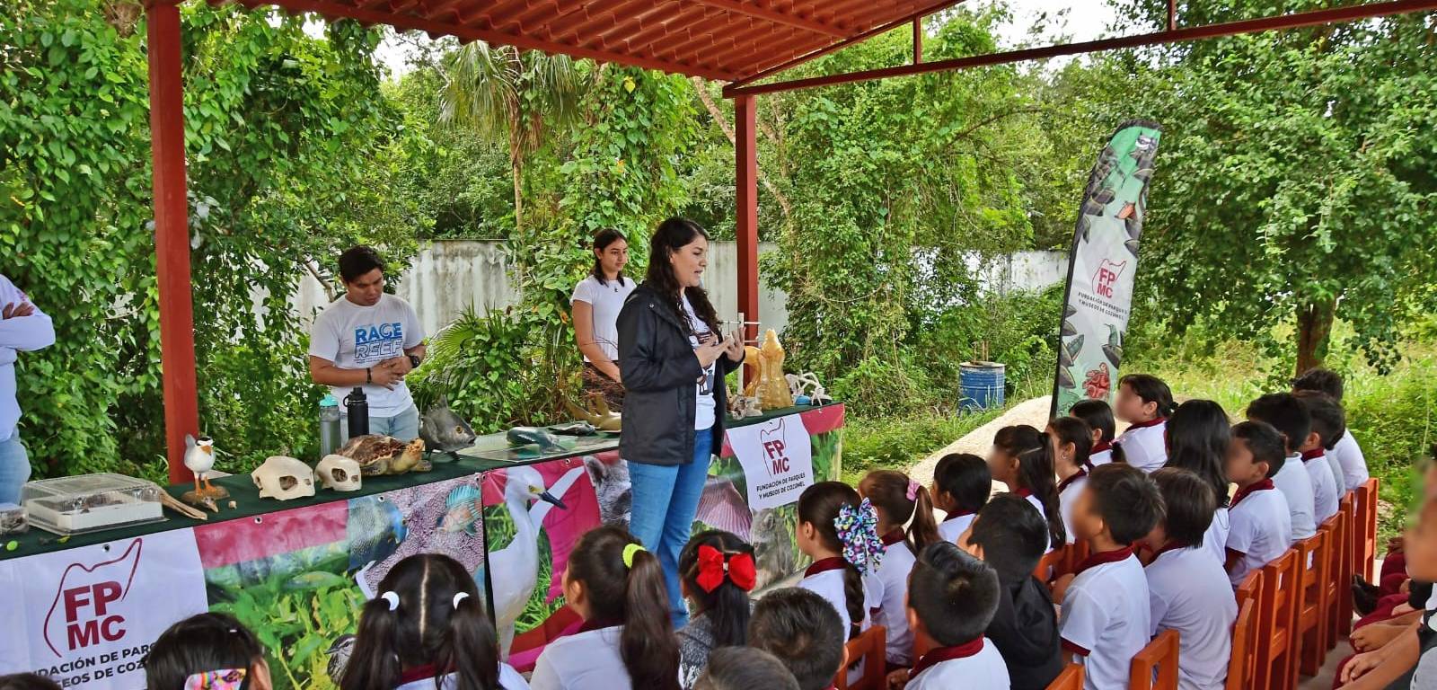 La FPMC también llevó información directamente a las escuelas para promover sus programas permanentes de conservación ambiental, entre ellos el de protección a la tortuga marina, restauración del ecosistema de mangle en Punta Sur, monitoreo y observación de aves, y restauración de corales en el Parque Chankanaab. Con ello, niñas, niños y jóvenes tuvieron la oportunidad de conocer de primera mano el trabajo que se realiza para mantener la riqueza natural de Cozumel.
