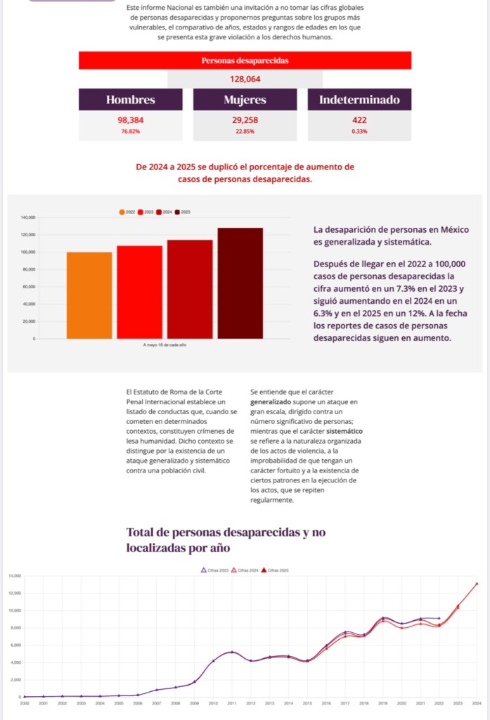 Sin embargo, el dato que contrasta con al reducción de homicidios, es el aumento de personas desaparecidas en México y el porcentaje de aumento anual.