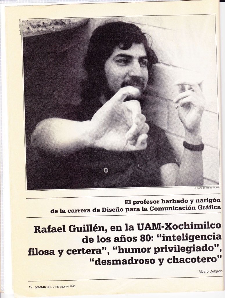 El entonces reportero de la revista «Proceso», Álvaro Delgado, allá por 1996, publicó un reportaje con imagenes de Marcos, el titular decía: «Rafael Guillén en la UAM – Xochimilco en los 80: «inteligencia filosa y certera», «humor privilegiado», «desmadroso y chacotero».
