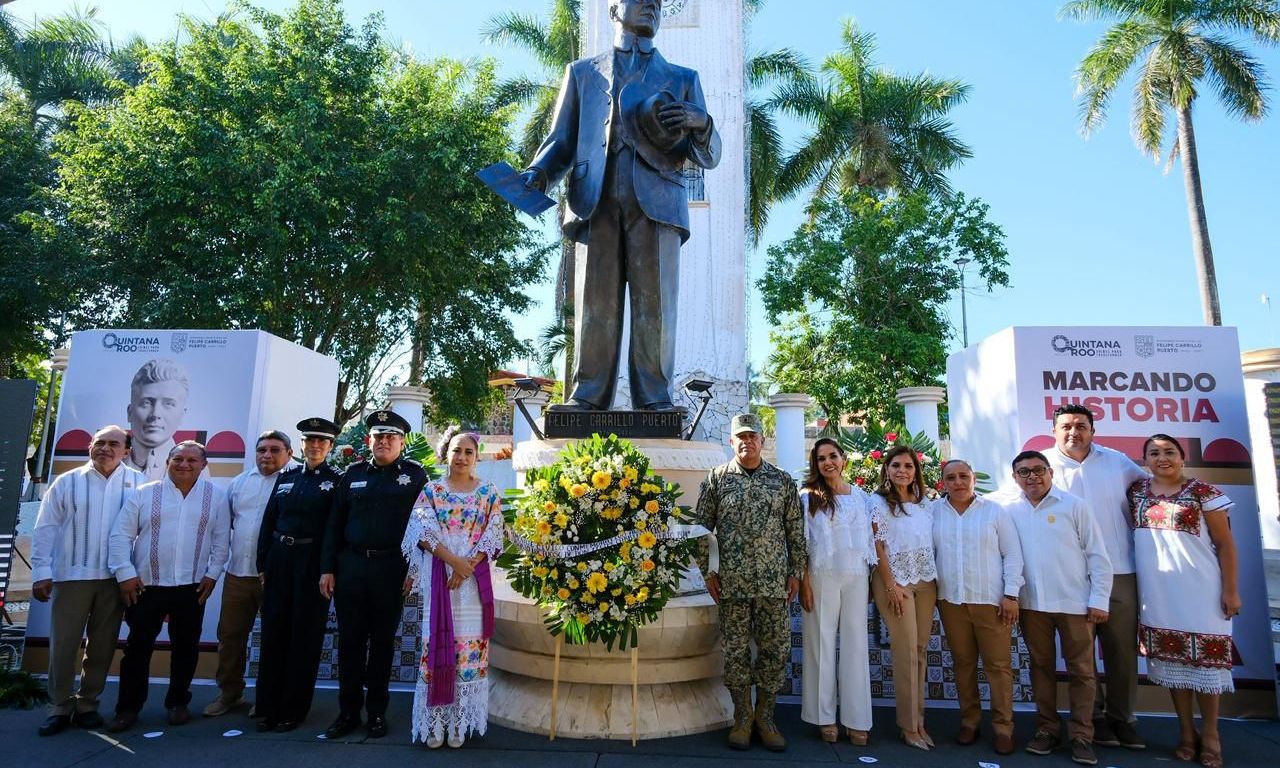 Pero dejó en claro que Carrillo Puerto no caminó solo, sino contó con el respaldo en unidad de su gabinete y del pueblo. “Hoy venimos a recordar ese legado, hoy venimos a hacer visibles esa transformación que él logró, compartiendo sus objetivos de justicia social, de equidad de género y de bienestar; no podemos perder jamás ese rumbo”, dijo.