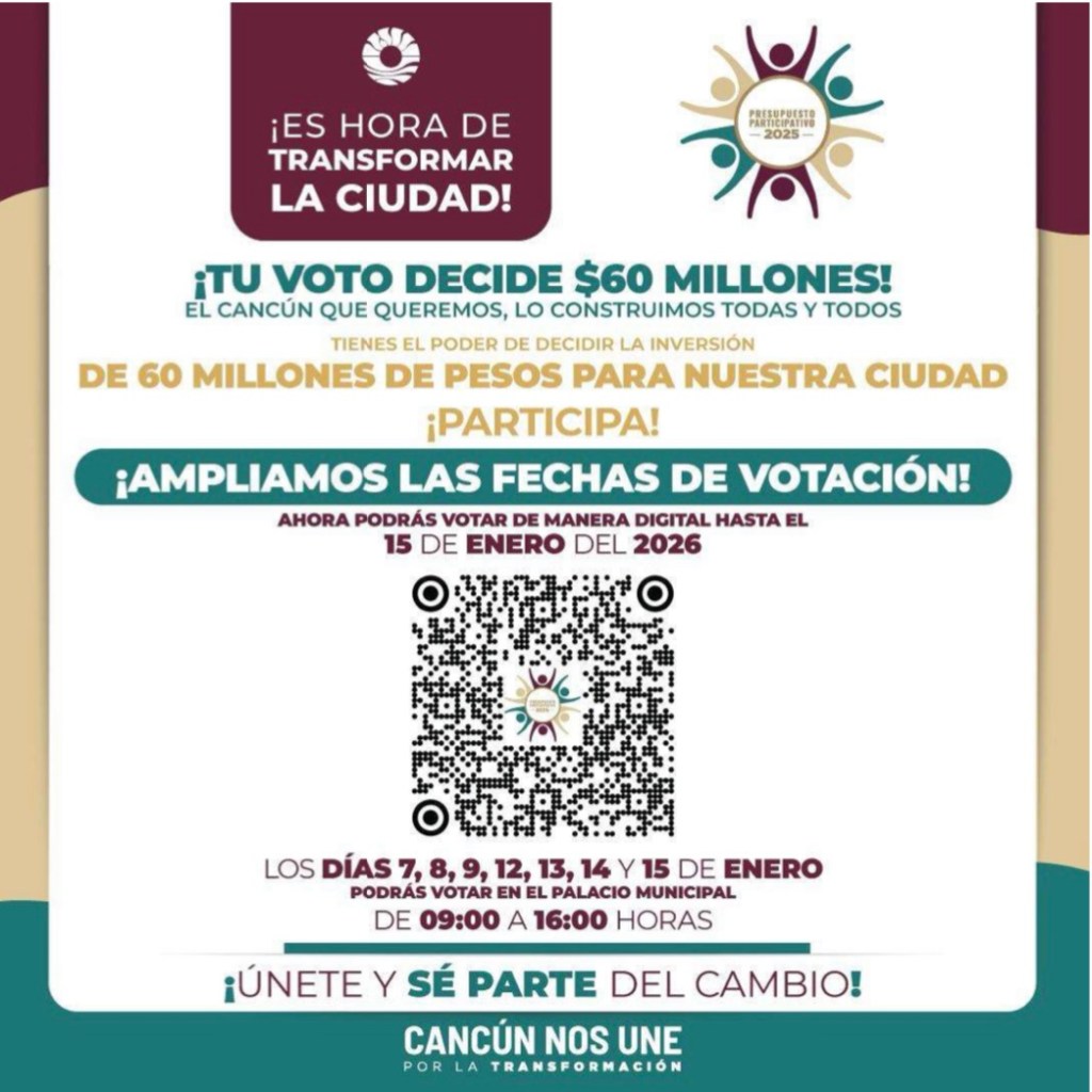 Precisa que la votación se puede realizar de manera presencial en las urnas colocadas en el Palacio Municipal de Benito Juárez y de forma digital.