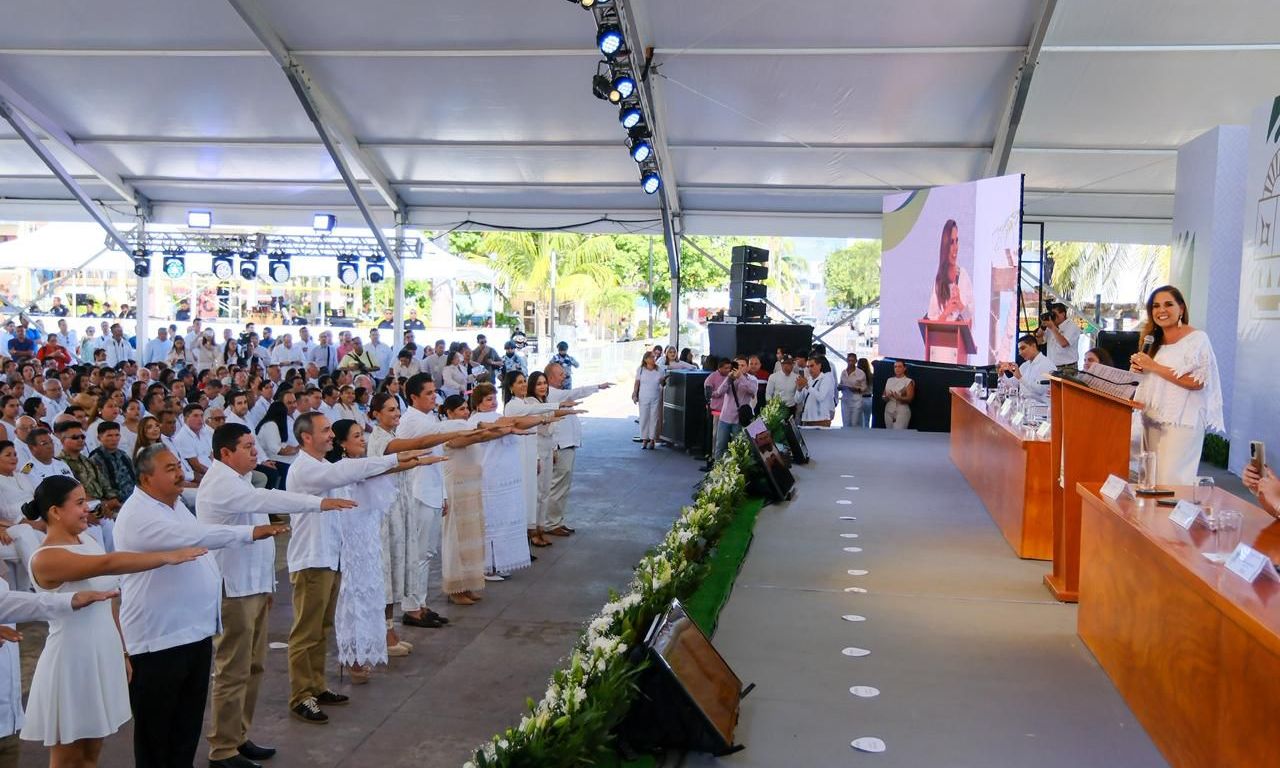 Puerto Morelos.- En el marco de la Sesión Solemne por el 10.º Aniversario de la creación del municipio de Puerto Morelos, la gobernadora Mara Lezama Espinosa acompañó a las y los portomorelenses en esta conmemoración destacando el carácter social de la municipalización, los avances alcanzados en la última década y una visión de desarrollo sostenible con justicia social.