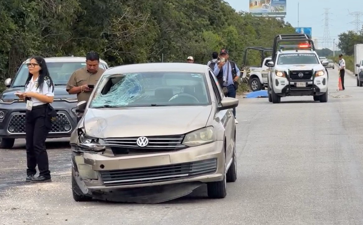 El accidente ocurrió sobre la avenida Huayacán, a unos 500 metros del libramiento a Mérida, lugar en el que laboraban este personal de limpieza, que fue atropellado por un Volkswagen Vento dorado, que se incorporó a esta vialidad sin percatarse de las vallas colocadas, mismas que también aplastó.