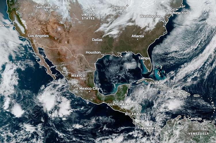Las imágenes satelitales de este viernes muestran que la banda nubosa del Frente Frío número 28 se está desplazando gradualmente hacia el Mar Caribe, abandonando la Península de Yucatán. Sin embargo, la masa de aire polar que lo impulsó se ha estacionado sobre la región, manteniendo condiciones de clima fresco y viento durante este día.