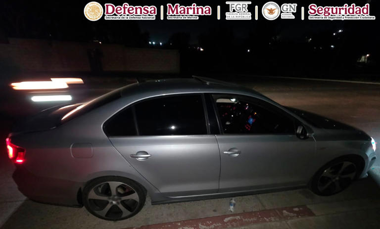 Los elementos federales localizaron un vehículo abandonado en la colonia García (carretera vieja a Tecate). Al inspeccionarlo, se hallaron: