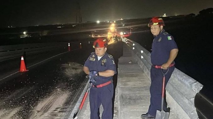La noche de este miércoles, autoridades de los tres niveles de gobierno activaron protocolos de emergencia tras reportarse un derrame de combustible sobre el puente del Tren Maya, ubicado en la carretera Umán–Ixtepén.