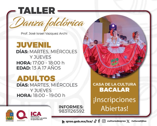 - Danza Folclórica: Martes, miércoles y jueves (Jóvenes y adultos).