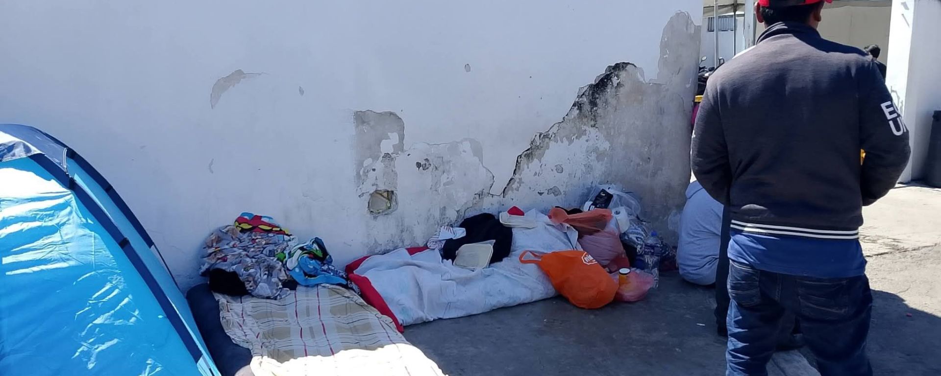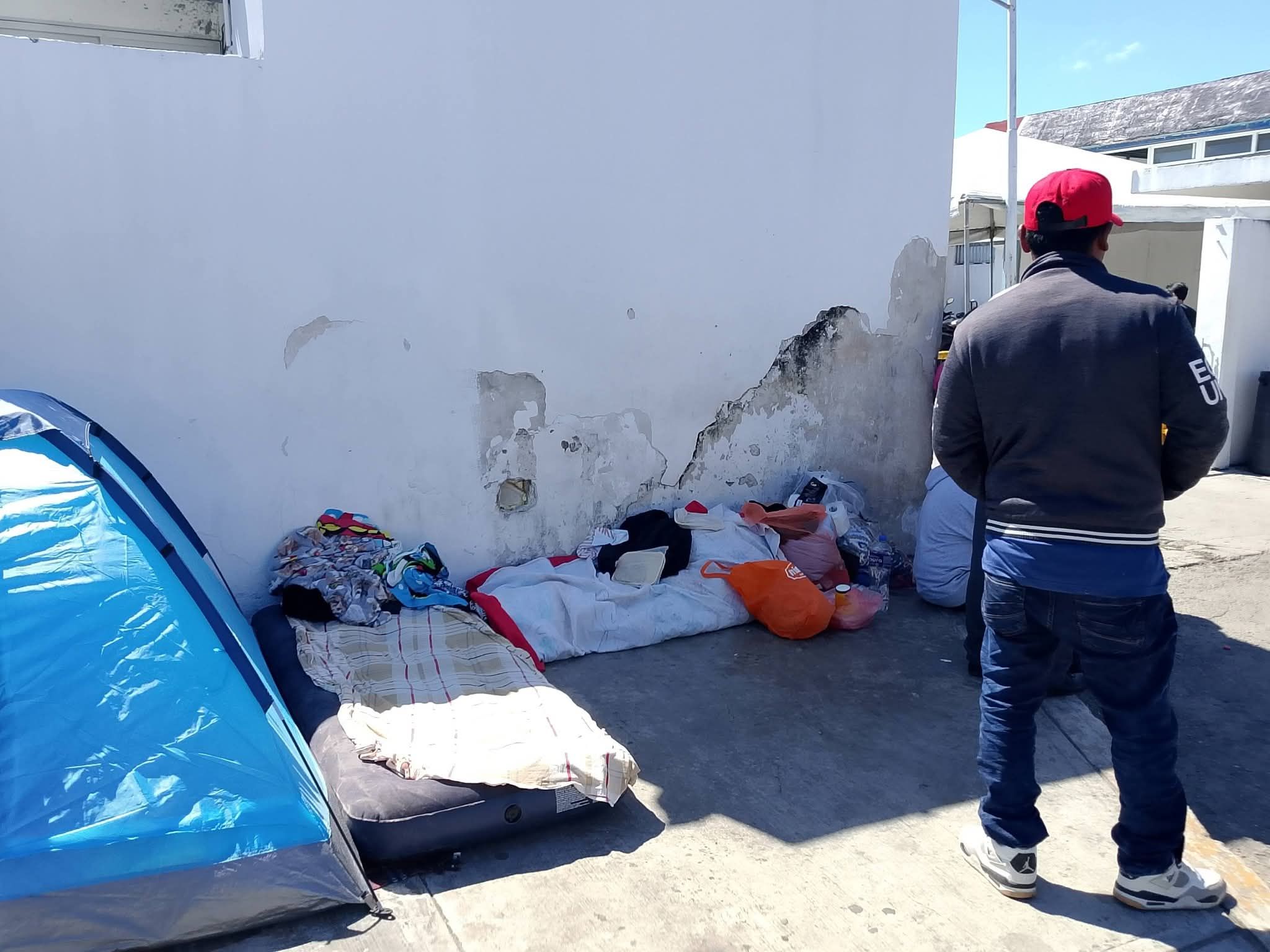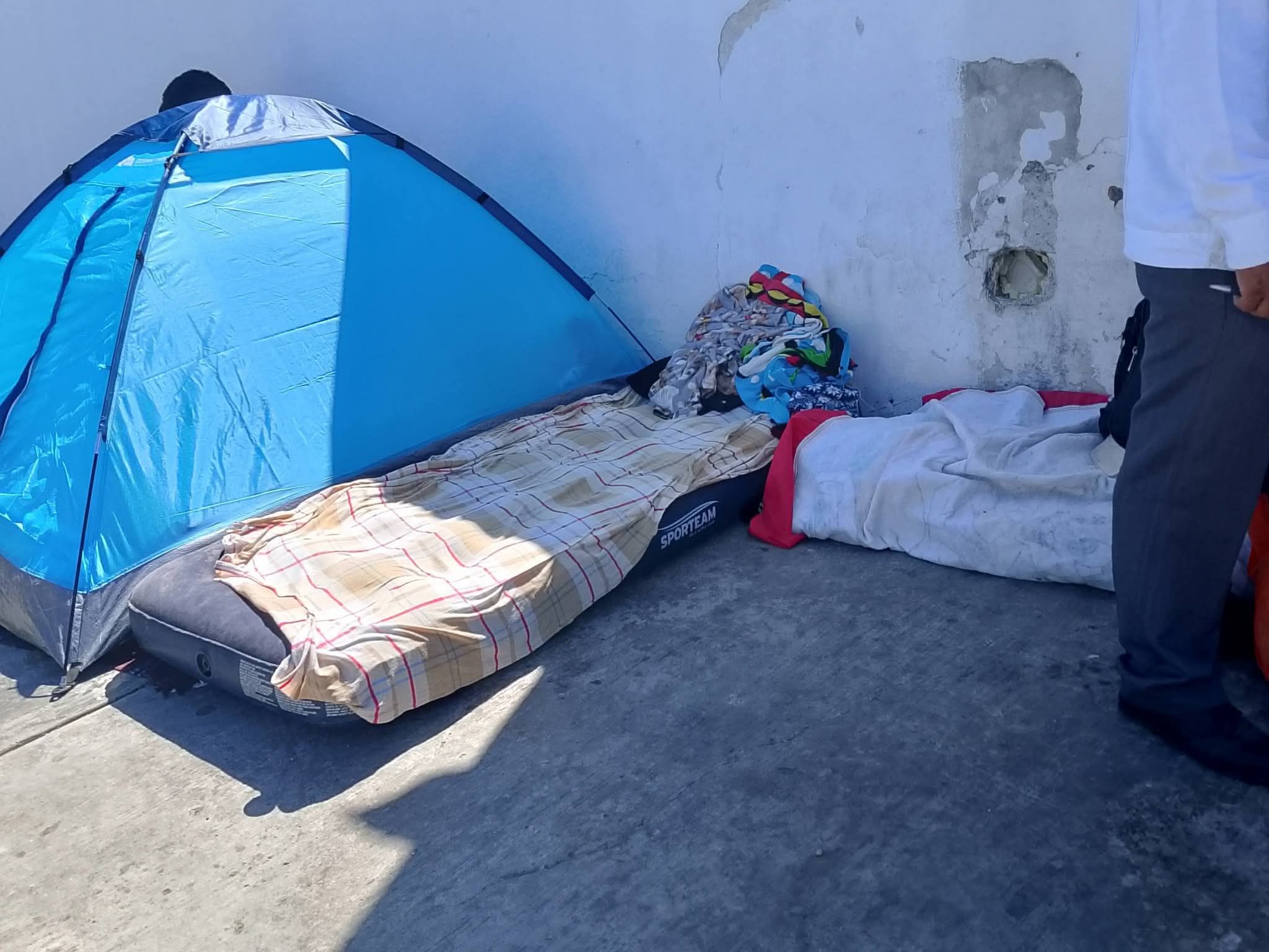 Lo que debería ser un proceso de acompañamiento médico se ha convertido en una prueba de supervivencia extrema. Las imágenes en el lugar hablan por sí solas: una pequeña tienda de campaña azul y una colchoneta sobre el concreto son el único refugio para una madre que se niega a separarse de su hija.