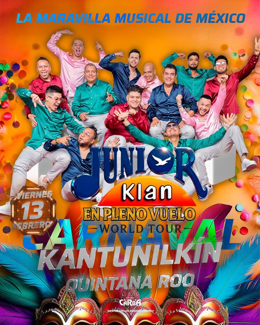 - Viernes 13 de febrero | Kantunilkín:La agrupación Junior Klan, denominada «La Maravilla Musical de México», se presentará en el marco de su gira internacional «En Pleno Vuelo World Tour». Se espera que el grupo interprete sus éxitos más conocidos en un evento masivo en la cabecera municipal.