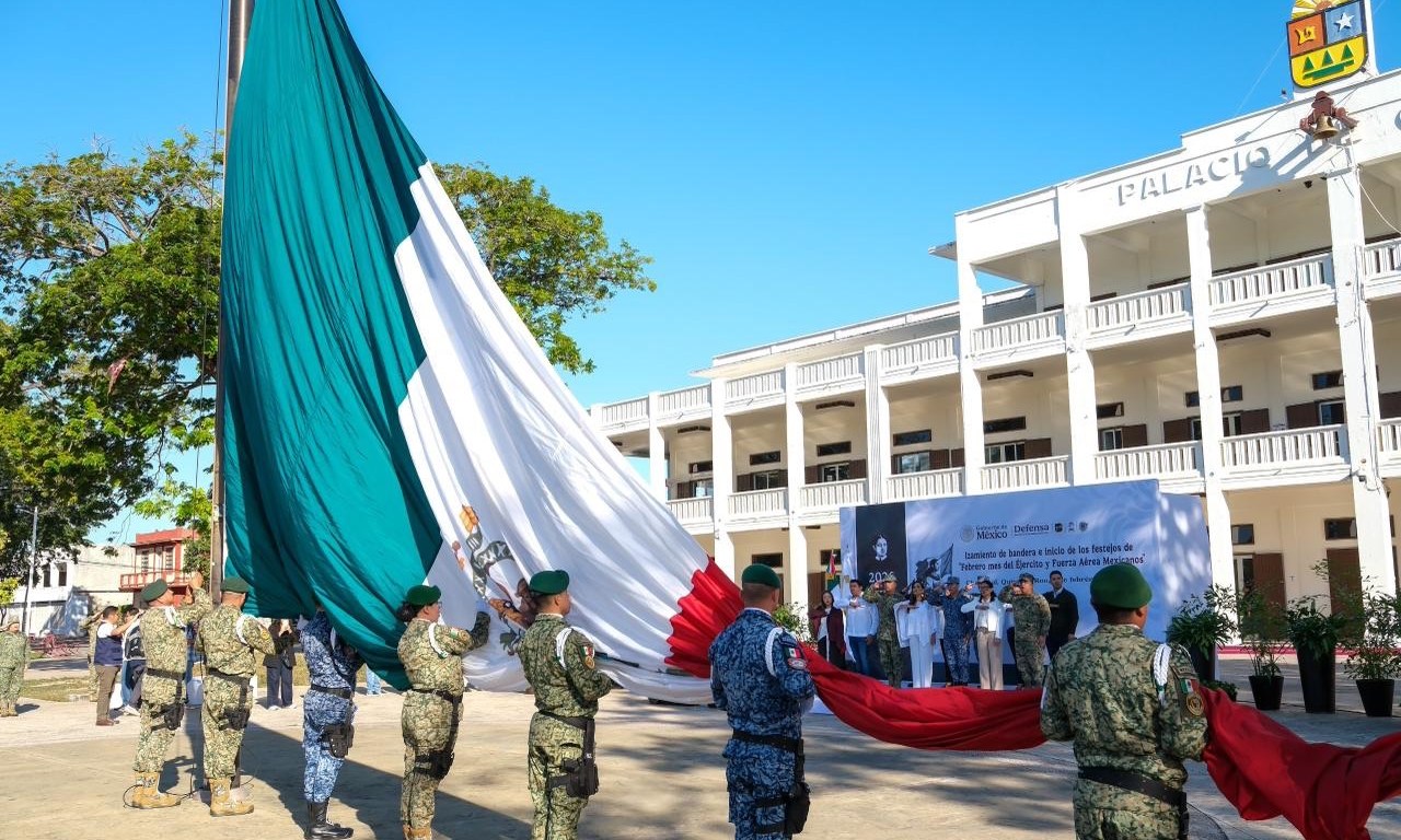 Chetumal.- Con el izamiento de la Bandera Nacional en la explanada de Palacio de Gobierno, en la capital del estado, la gobernadora Mara Lezama Espinosa encabezó el inicio oficial de los festejos de “Febrero, mes del Ejército y Fuerza Aérea Mexicanos”, una conmemoración que contempla actividades cívicas, culturales, deportivas y de proximidad social en la entidad.