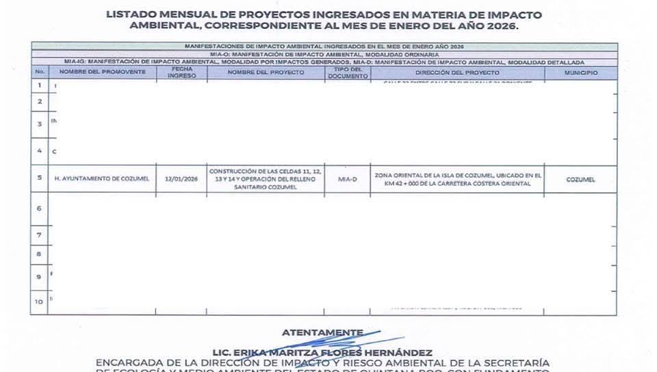 La gestión de residuos sólidos en la isla entra en una nueva fase técnica tras la solicitud de la Manifestación de Impacto Ambiental (MIA) para la construcción de cuatro nuevas celdas de disposición final. El proyecto, que contempla las celdas 11, 12, 13 y 14, busca dar continuidad operativa al sistema de saneamiento actual ante la reciente puesta en marcha de la celda número 10.