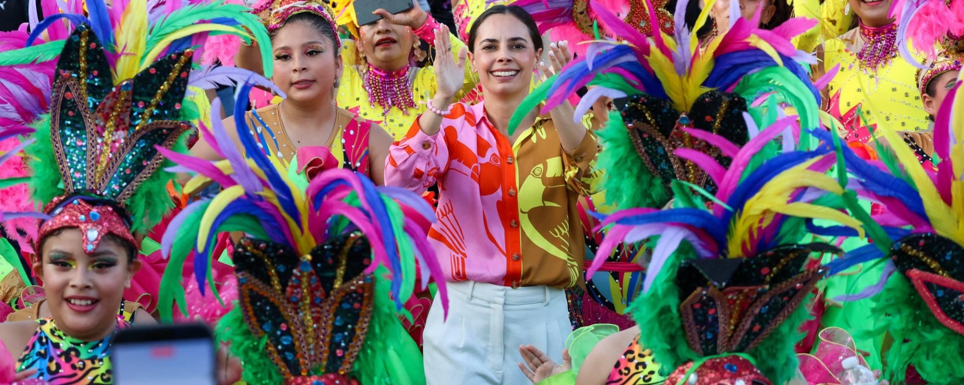 Desde el colorido vehículo que transportó a los Reyes Soberanos de este 2026, Ana Paty Peralta saludó a niños, jóvenes y adultos que a lo largo de la Avenida Tulum se posicionaron en la banqueta para esperar el paso de comparsas, automóviles decorados, animadores, bailarines y demás participantes que seguían invitando a cancunenses y turistas a que se unan al resto de las actividades como concursos de baile y conciertos gratuitos en Malecón Tajamar y en el estadio Sherwin-Williams, antes «Beto Ávila».