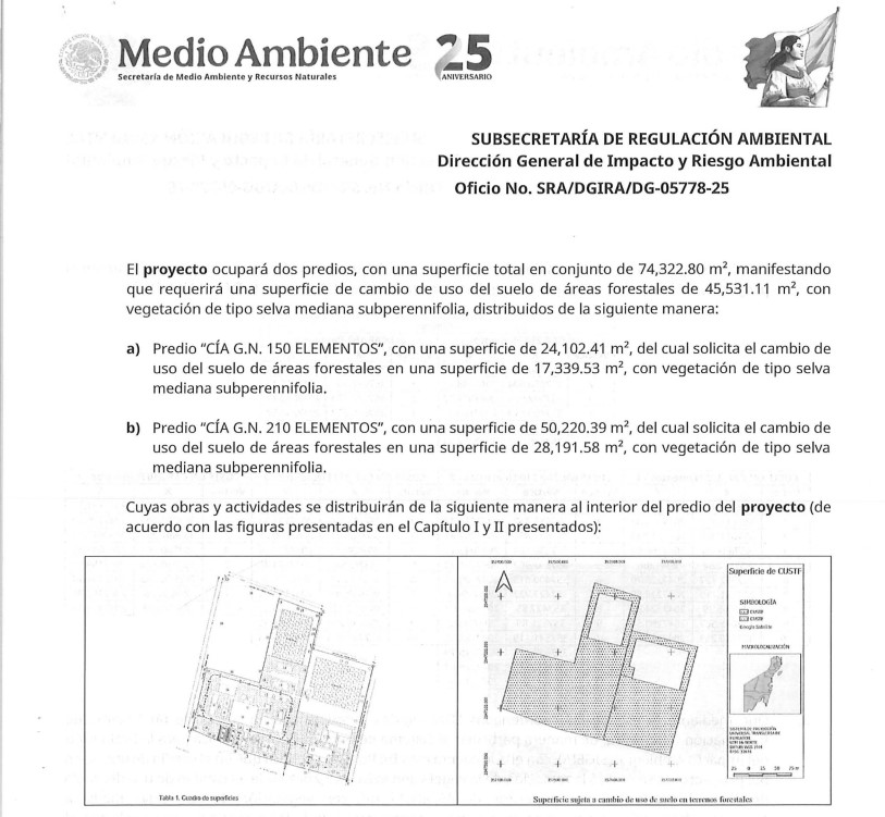 Para entonces, el daño ya estaba hecho: 45,531.11 metros cuadrados de selva mediana subperennifolia habían sido devastados sin el permiso previo que exige la Ley General del Equilibrio Ecológico y la Protección al Ambiente (LGEEPA).