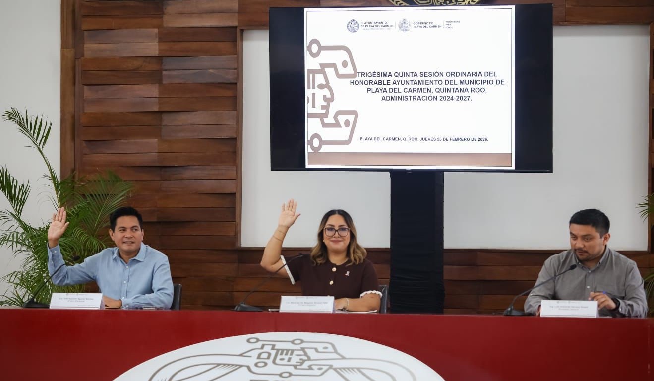 Playa del Carmen, Quintana Roo, 26 de febrero de 2026.— En el marco de la Trigésima Quinta Sesión Ordinaria del Honorable Ayuntamiento, encabezada por la primera regidora Milagros Álvarez, en representación de la presidenta municipal Estefanía Mercado, el Cabildo aprobó por unanimidad la prórroga para la renovación y refrendo anual de la licencia de funcionamiento municipal correspondiente al ejercicio fiscal 2026.