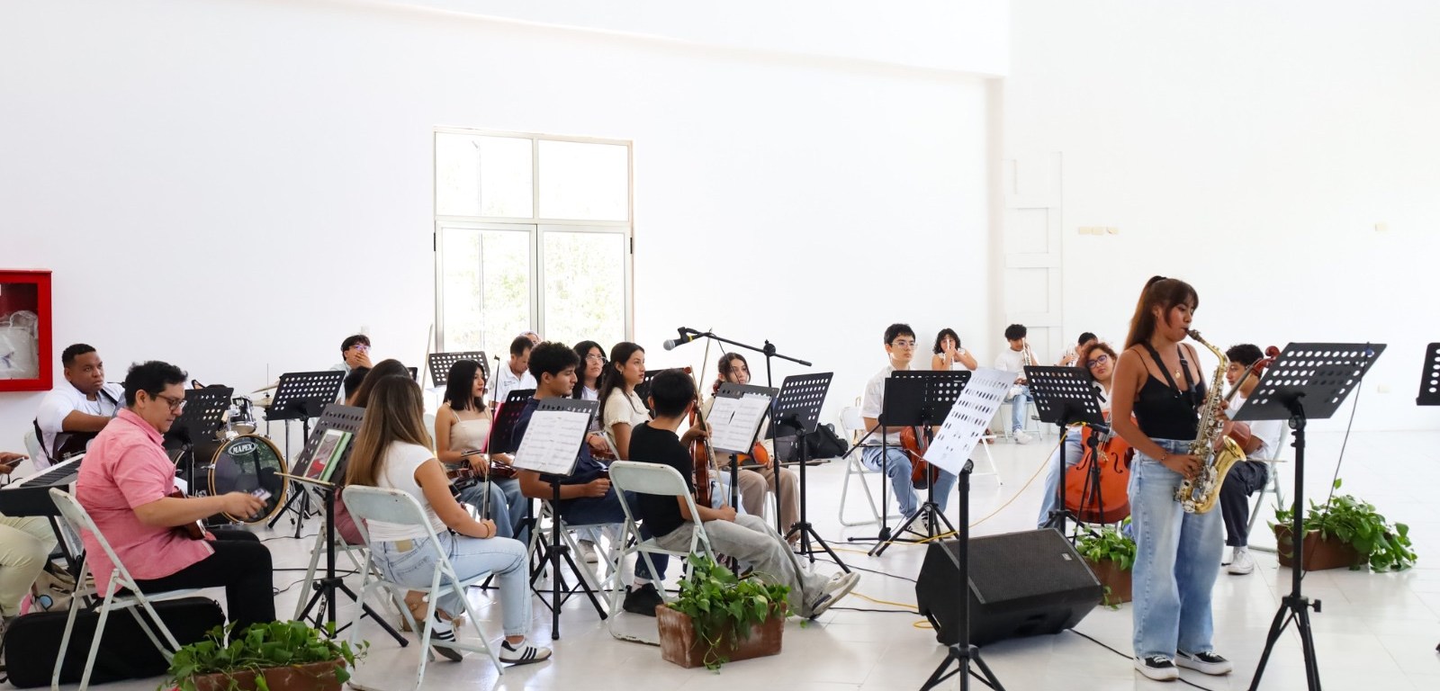 Playa del Carmen, Q. Roo, 14 de marzo de 2026.- Como parte de la promoción cultural del gobierno de la presidenta municipal Estefanía Mercado, la Orquesta Sinfónica Infantil y Juvenil de Playa del Carmen se presentó en la Universidad Autónoma del Estado de Quintana Roo (UQROO), como parte del convenio de colaboración entre ambas instituciones.