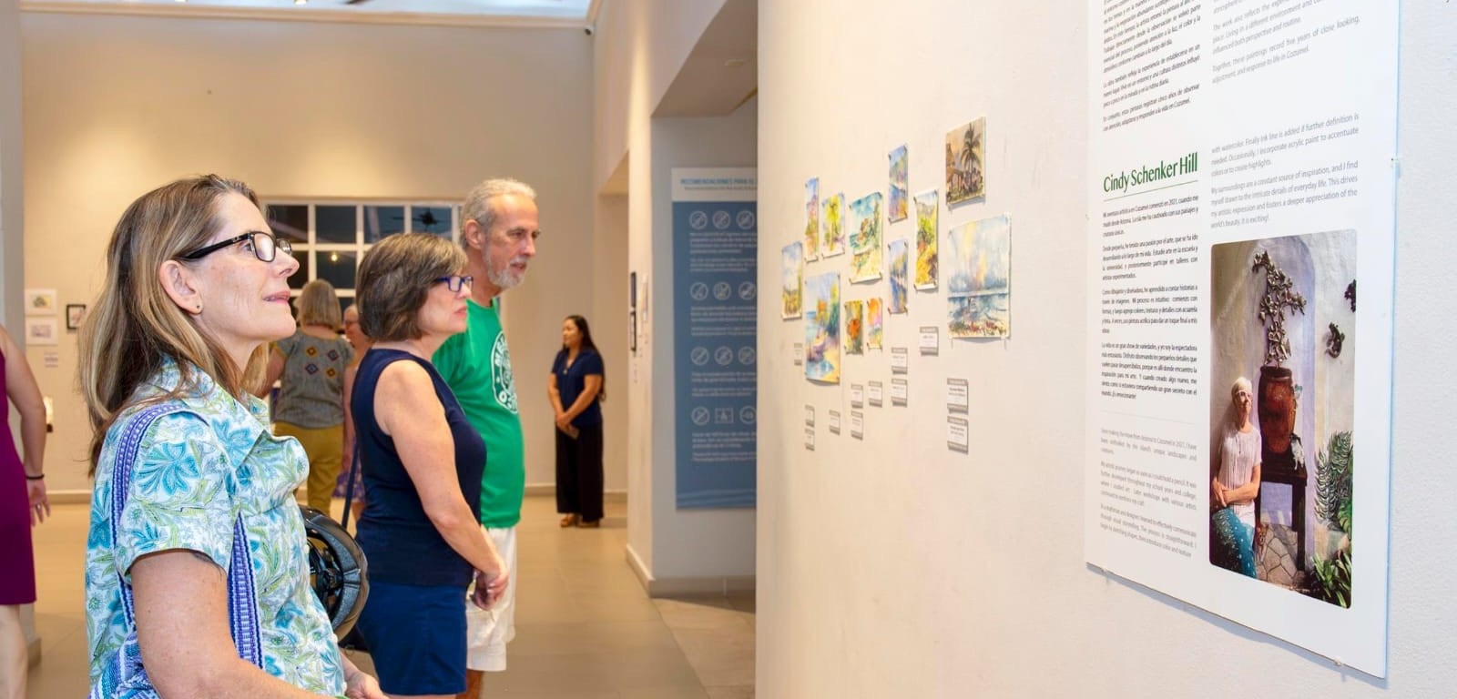 Cozumel.- La Fundación de Parques y Museos de Cozumel (FPMC) inauguró en el Museo de la Isla la exposición pictórica “Un Mundo Hermoso. Cercano y Lejano” de la artista Cindy Schenker Hill, integrada por 58 obras realizadas en acuarela y bolígrafo que invitan al público a descubrir la belleza de lo cotidiano y de los paisajes que inspiran su mirada artística.