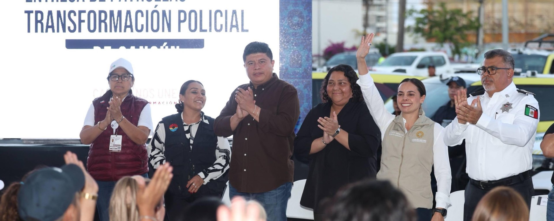 Cancún, Q. R., a 24 de marzo de 2026.- Como parte de las acciones para contribuir a la seguridad, el orden y la paz pública, la Presidenta Municipal, Ana Paty Peralta, asignó 10 patrullas del parque vehicular de la Secretaría Municipal de Seguridad Ciudadana y Tránsito (SMSCyT) al Sector 5, donde además atestiguó la conformación de 3 nuevos Comités de paz.